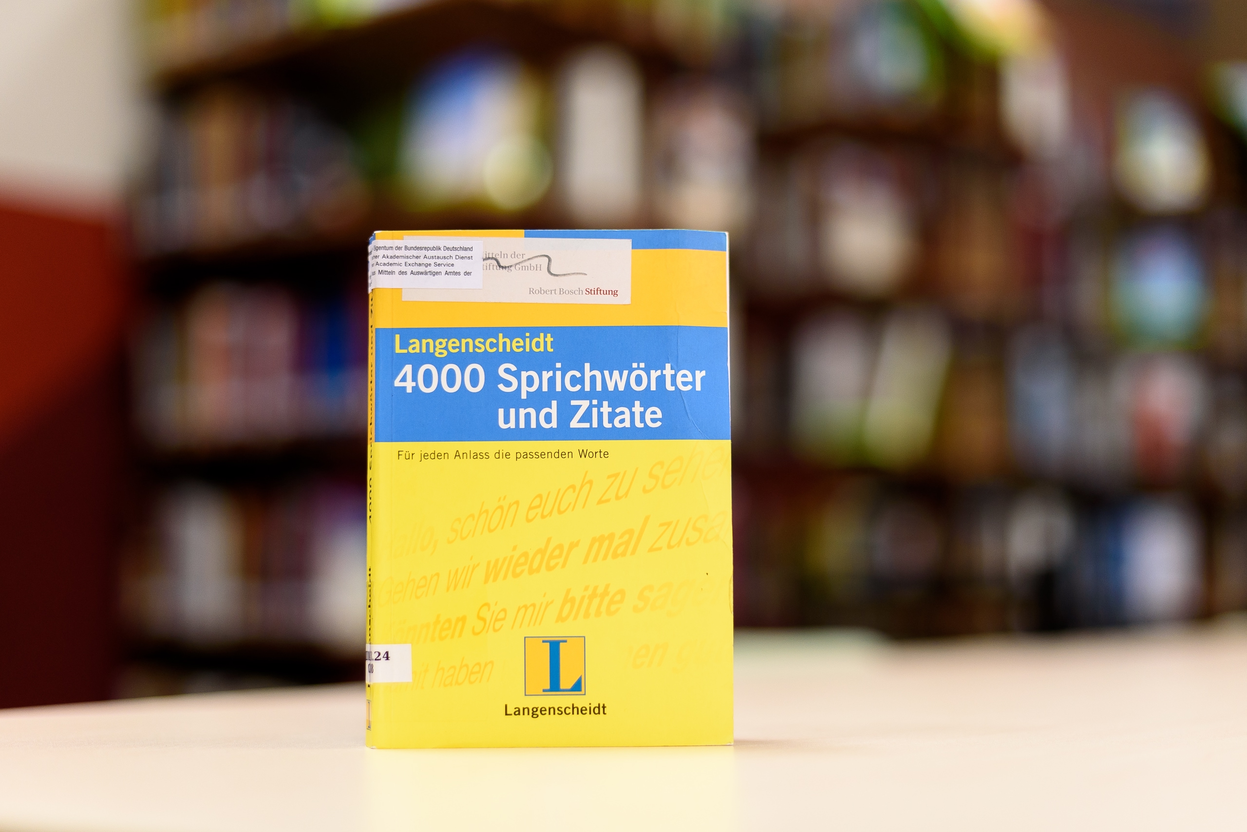 In this book, they are all organized alphabetically by a keyword. The keywords are also listed in alphabetical order. For example, if you need to find quotes containing the word “Politik”, first check if it is listed among the keywords, then look within the section for the letter “P”. Gerr E. Langenscheidt 4000 Sprichwörter und Zitate : [für jeden Anlass die passenden Worte] / von Elke Gerr. - Berlin [u. a.] : Langenscheidt, 2001. - 319 p. (Location – German reading room, catalog code – Ш143.24 G38)
