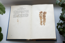 – Особое внимание уделено личному книжному собранию Иоганзена, которое передано наследниками в Научную библиотеку, – рассказывает одна из авторов выставки, главный библиотекарь отдела основного фонда Анастасия Березовская. – В лонгрид вошли оцифрованные материалы, а также фотографии одной из первых статей Бодо Германовича и дарственных надписей на изданиях, подаренных Иоганзену коллегами. Особый рассказ посвящён своеобразной «жемчужине» собрания – редкому изданию «Meža sūnas» (1965) с вклеенным гербарием мхов и автографом-посвящением латвийского биолога Аустры Аболинь.